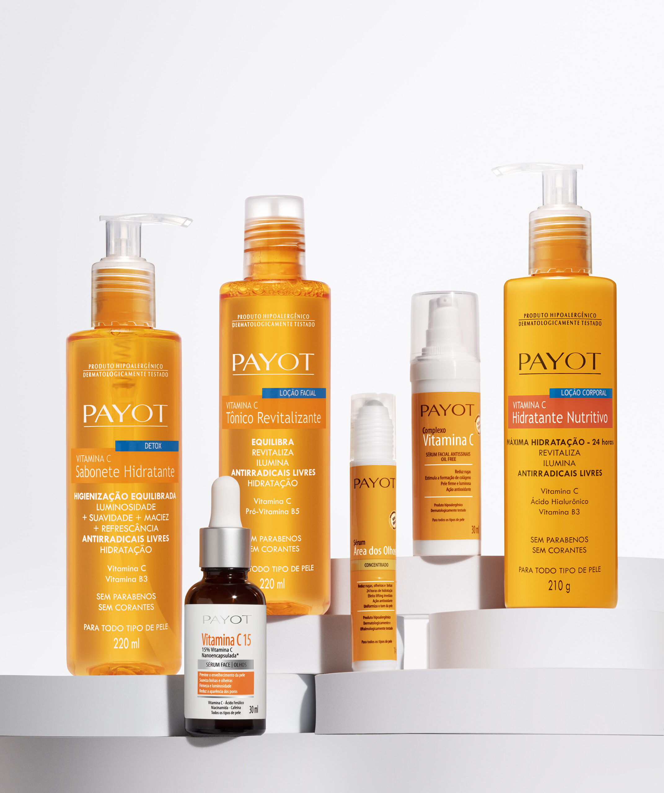 A Vitamina C é um dos ingredientes mais poderosos nos cuidados com a pele, reconhecida por sua ação antioxidante, capacidade de iluminar o rosto e estimular a produção de colágeno. Seus benefícios incluem a redução de linhas finas, uniformização do tom da pele, hidratação profunda e proteção contra os danos causados pelos radicais livres. Pensando nisso, a Payot desenvolveu uma linha completa de produtos enriquecidos com Vitamina C para atender às mais diversas necessidades da pele.