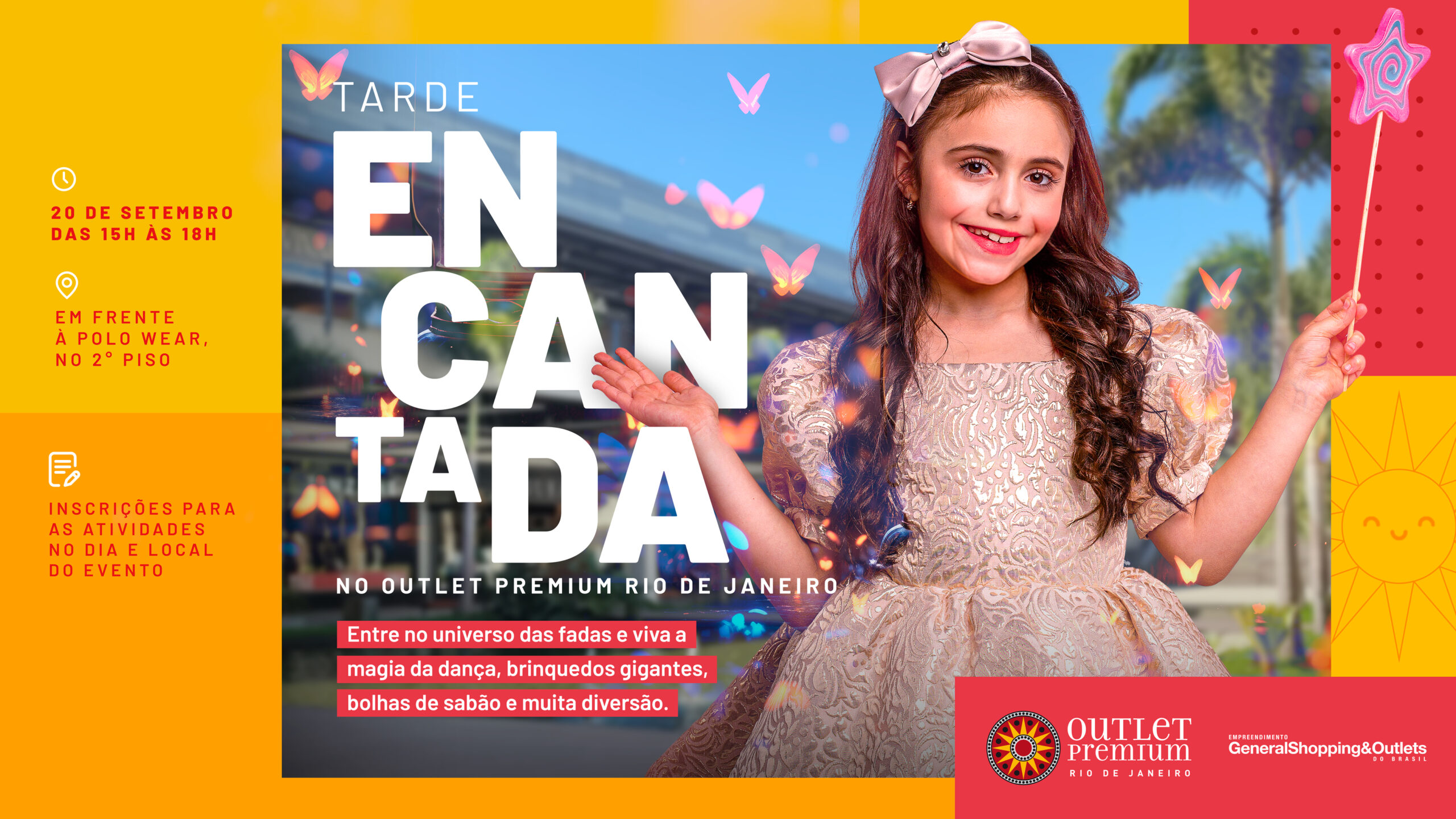 No próximo sábado (20), o universo infantil tomará conta do Outlet Premium Rio de Janeiro com o evento Tarde Encantada, que combina atividades lúdicas e interativas. A diversão começa a partir das 15h, com atividades para as crianças.